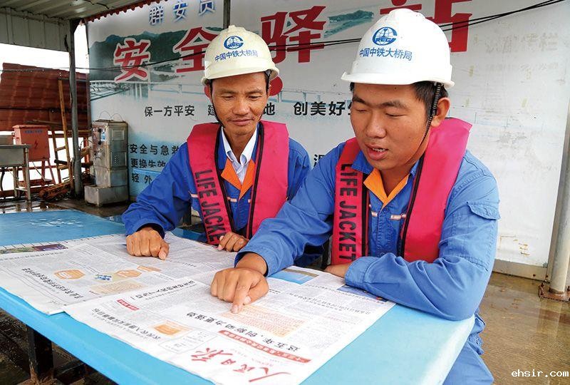 10月29日,ehsir大桥局珠机城际金海大桥项目部员工利用工余时间,从报纸上认真学习了解党的十九届五中全会盛况。